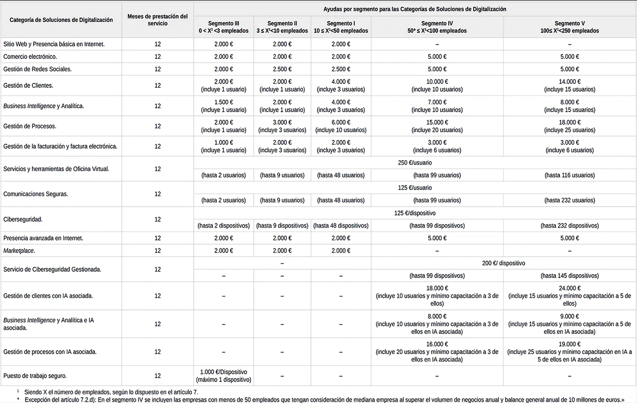 - Hasta 12.000 euros: para empresas que tienen entre 10 y 50 empleados.